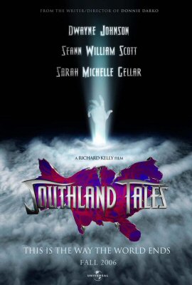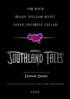 《Southland Tales》是以《怵目驚魂28天(Donnie Darko)》成為Cult片偶像的年輕導演Richard Kelly入圍2006年坎城正式競賽的新作,片長160分鐘,叫得出來的好萊塢明星也不少,可惜在坎城招致惡評,至今連美國本土上映日期都未定。不過話說回來,當初《怵目驚魂28天》剛在美國推出時反應也頗冷淡,若非日後因DVD的推出而引發流行反攻回戲院,Richard Kelly不曉得還要被埋沒多久哩。《Southland Tales》也發行了同名圖像小說(Graphic Novel),另外,看它另幾款海報,有點未來感,有點迷幻,仍是走Donnie Darko風。