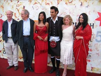 沒多久,在《蘇格蘭之吻》中飾演男主角親朋好友等配角的幾位不知名演員首先現身暖場,也許因為都不是職業演員的關係,他們害羞地快步走過紅毯,還得勞煩某位記者大叫他們停下來笑一個給大家拍拍照,他們才尷尬地面向記者微笑一分鐘。拍完了兩批「暖身團」,肯佬(左二)偕同編劇Paul Laverty(左一)、男主角Atta Yaqub(右三)、女主角Eva Birthistle(右二)、在片中飾演Atta大姊的Ghizala Avan(右一)及小妹的Shabana Bakhsh(左三)浩浩蕩蕩現身紅毯。